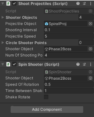 As Lead Design, I led design discussion on which patterns we would include. We decided to have a 3-part boss fight of ramping difficulty first, then we had to decide which patterns to include where. I had to keep in mind which patterns would be more or less difficult, and how that would change based on the boss AI behavior and the grouping of different patterns together.
